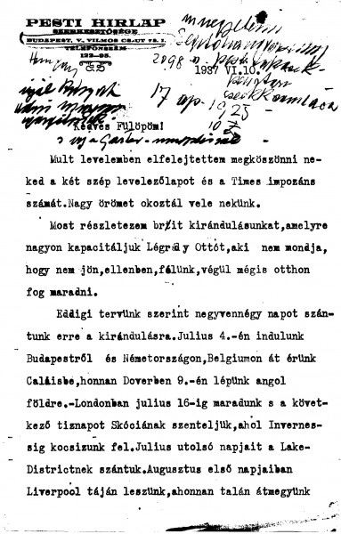 Siklóssy outlines his travel plans for July and August, expressing the hope of seeing de László. He notes the forthcoming distribution of the Hungarian edition of "Painting a Portrait".