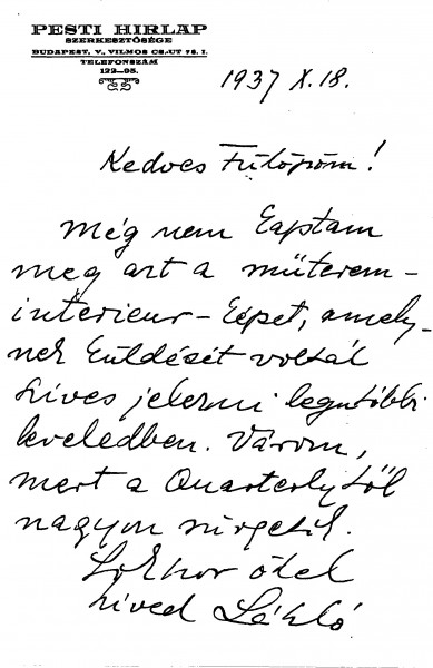 Siklóssy has yet to receive the photograph of de László in his studio, which the Hungarian Quarterly is eagerly awaiting.