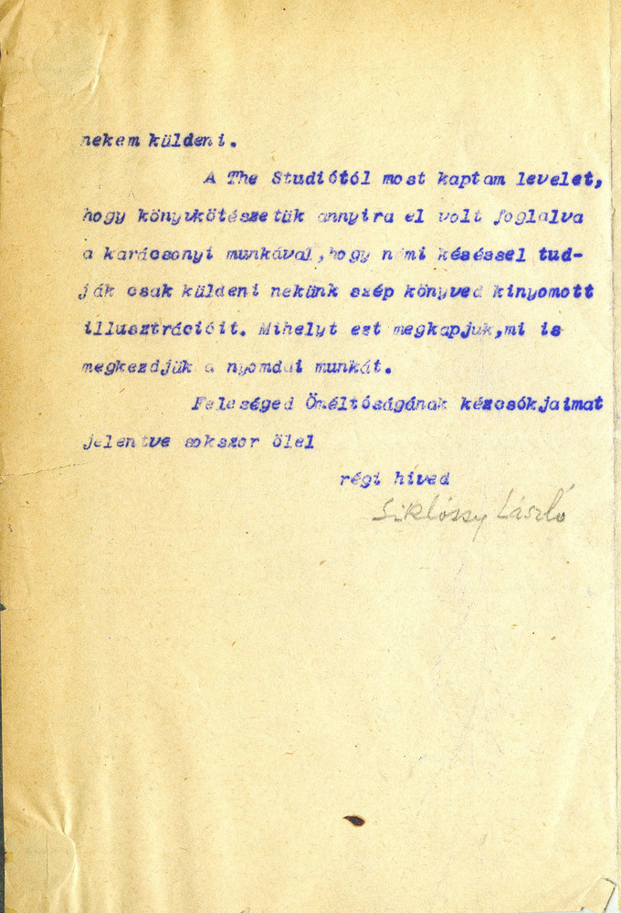 Siklóssy informs de László about a new English-language journal, "The Hungarian Quarterly", and encourages him to contribute a Hungary-related excerpt from his memoirs for the first issue. Mentions a delay in receiving printed illustrations for the Hungarian edition of "Painting a Portrait" (Duplicate of DLA037-0048).