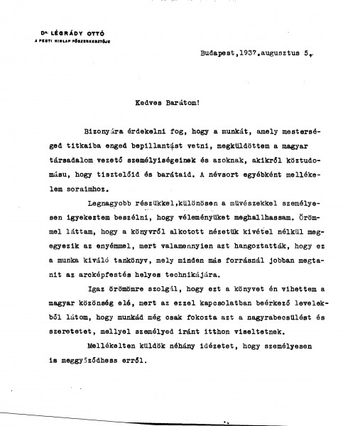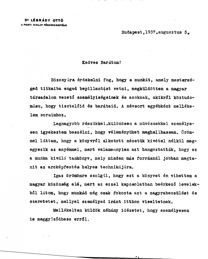 Légrády has sent the Hungarian translation of “Painting a Portrait” to various prominent people; he encloses a list.