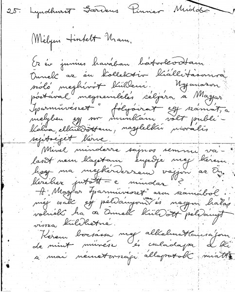 Bossányi writes to follow up on an earlier letter and periodical he sent in June. As a displaced artist struggling to rebuild his life in England, he seeks support and recommendations for work in glass painting and ceramics, citing his past experience with major German state projects.