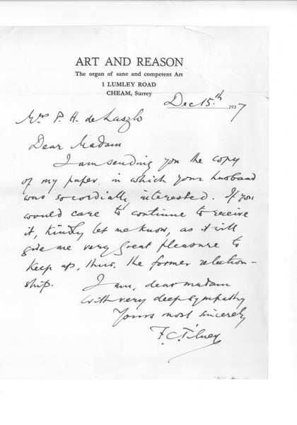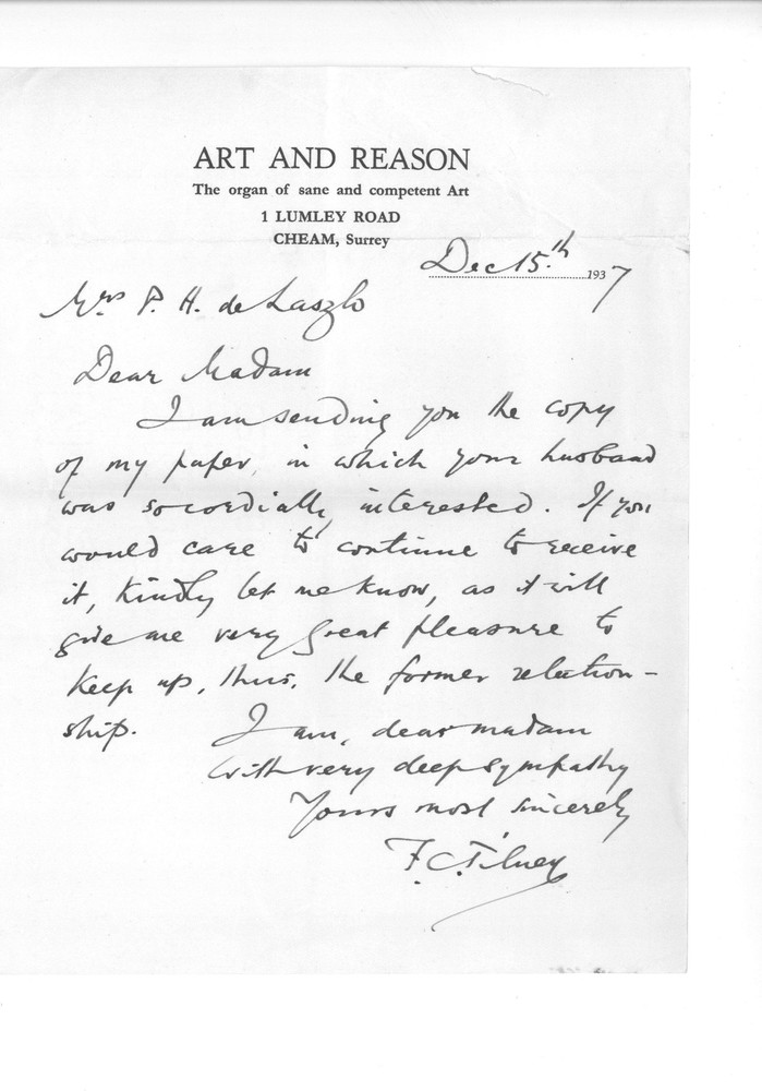 Letter from F.C. Tilney to Lucy de László, Letters 1937 - Mostly Condolence, 156-0009