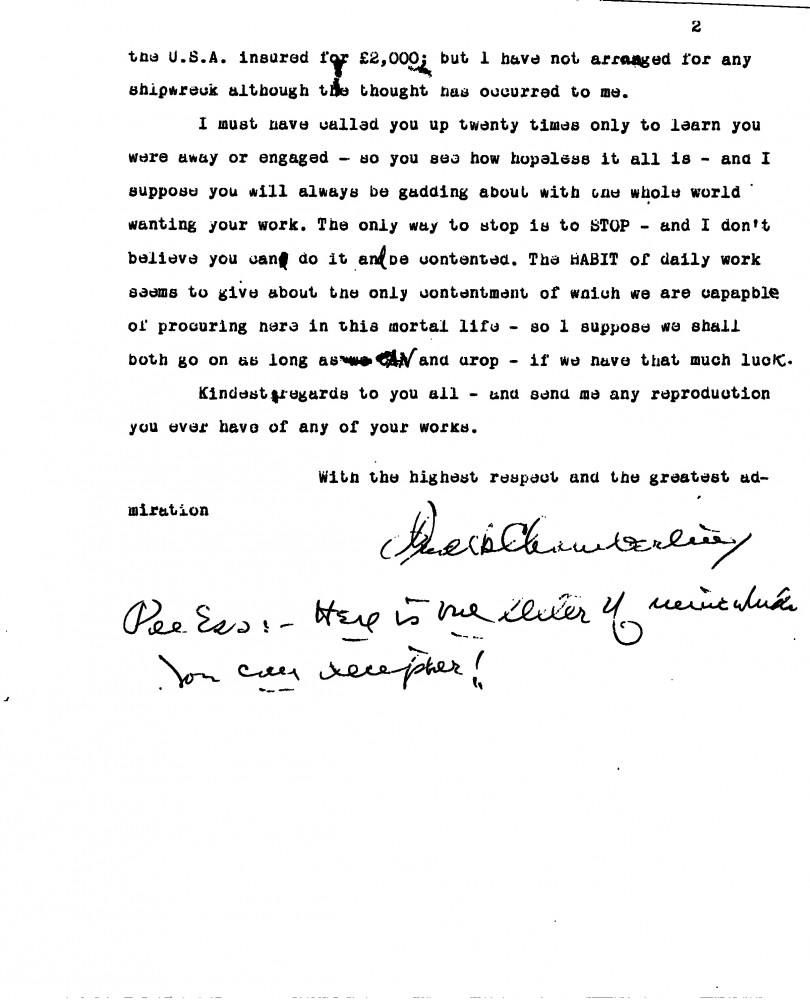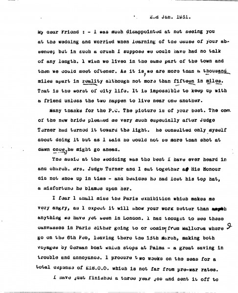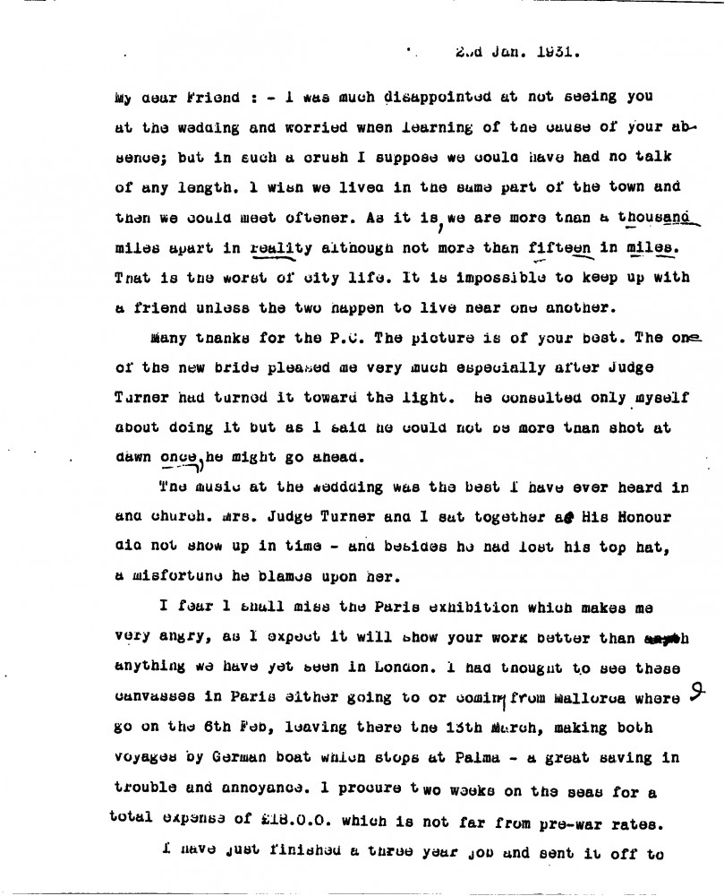 Chamberlin was disappointed de László was not at wedding (see fn 1 in transcription); liked picture of bride [possibly 11084]; Judge & Mrs Turner also present. Mentions travel plans/his own work and de László's ever-busy schedule.