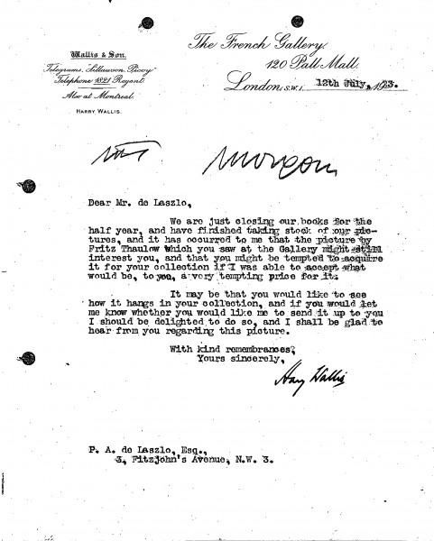 Letter from Harry Wallis to de László, Exhibition at French Gallery London June 1923, 106-0039