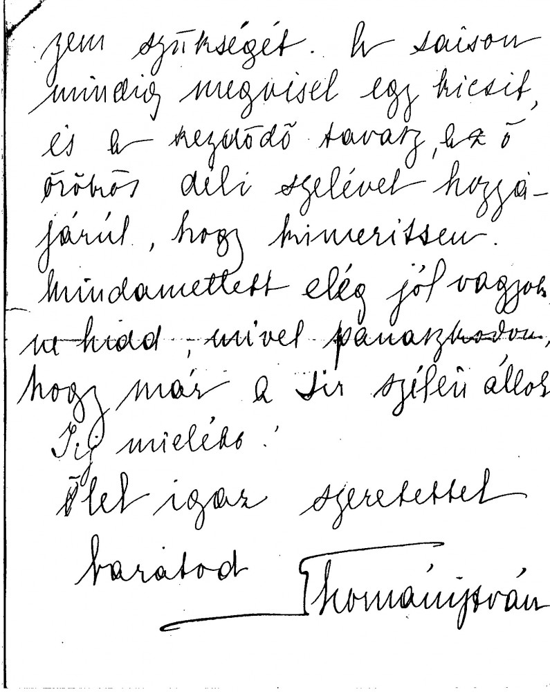 Thomán thanks de László for his kind letter. He praises the artist's group portrait of Mme Polákovits with her children [111395]. He wishes de László all the best for his "big picture". Forthcoming concert and plans to visit the countryside.