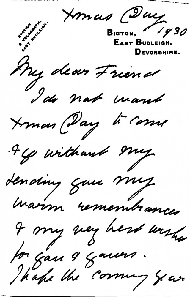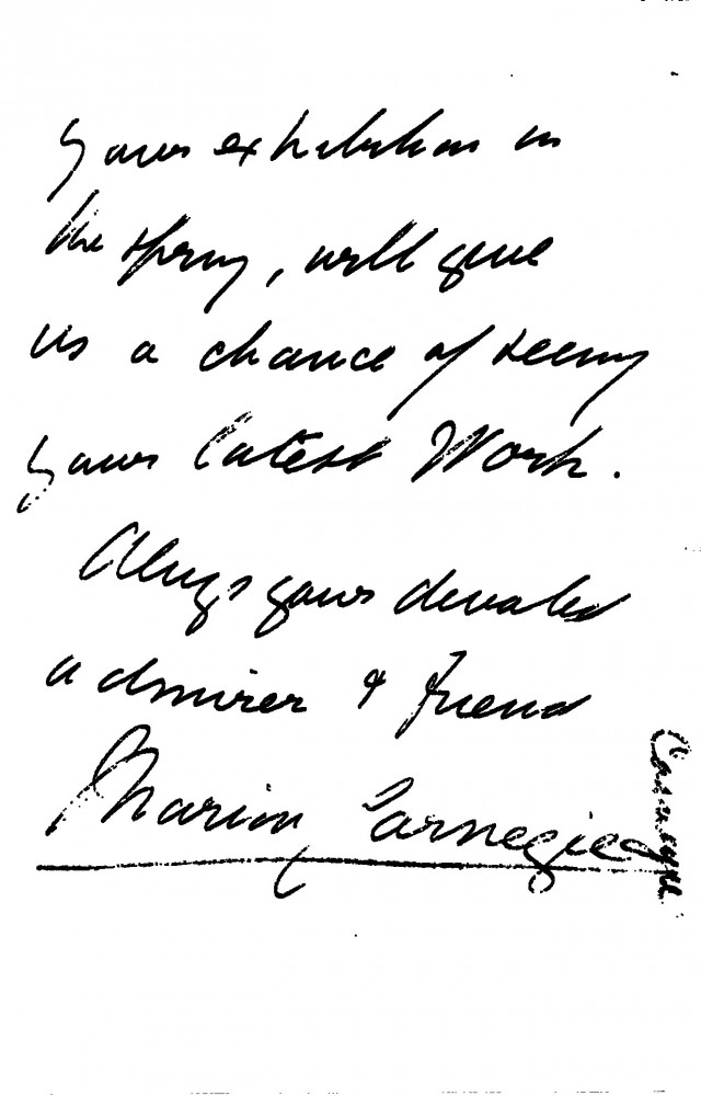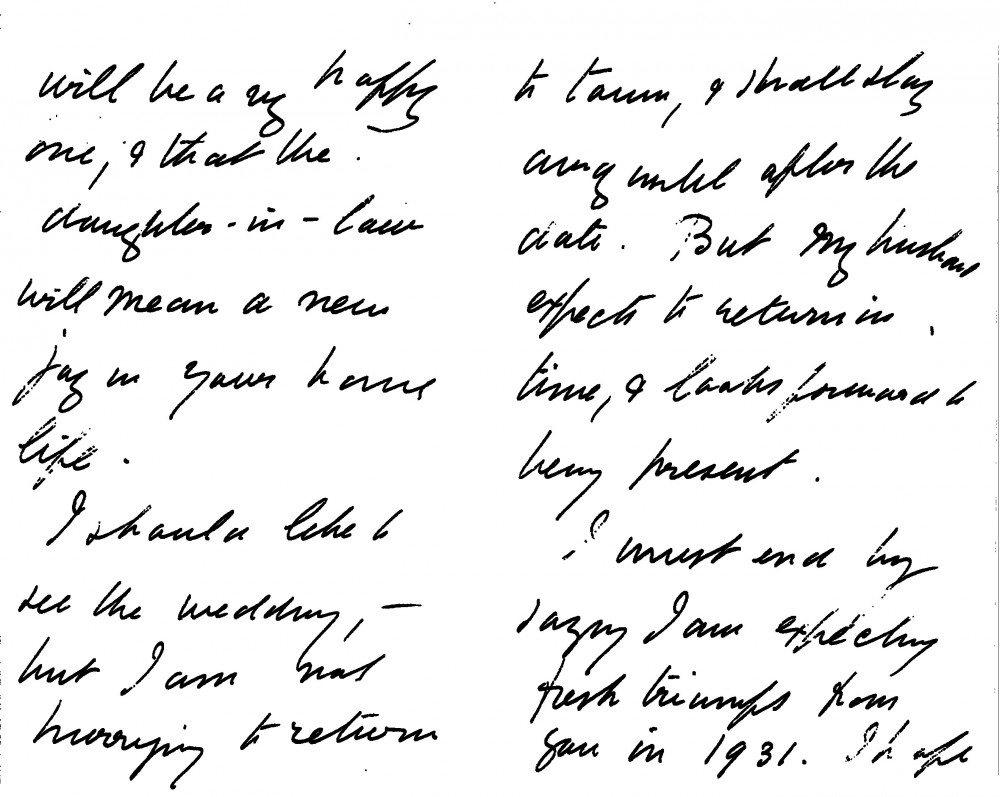 Christmas greetings from Lady Carnegie; regrets her inability to attend Stephen de László’s wedding, though her husband will attend; expresses anticipation of the spring exhibition (item was previously archived with DLA018-0043).