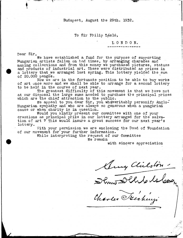 Letter from Lady Chilston, Count Klebersberg and Count Széchény to de László, Supplementary Arranged by Years Only 1930-1932, 019-0265