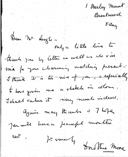 Lady Dorothie Moore thanks de László for his wedding gift, a study portrait [6358].