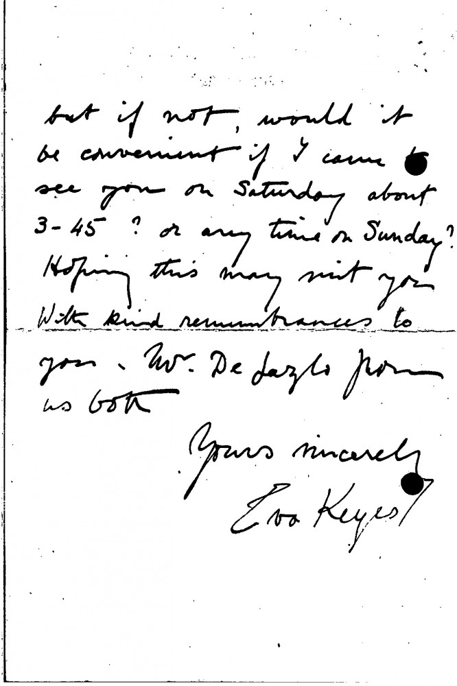 Letter from Lady Keyes to de László, K 1916, 1923, 1924, 1931, 1932, 1933, 1935, 1937, 073-0008