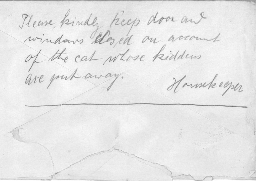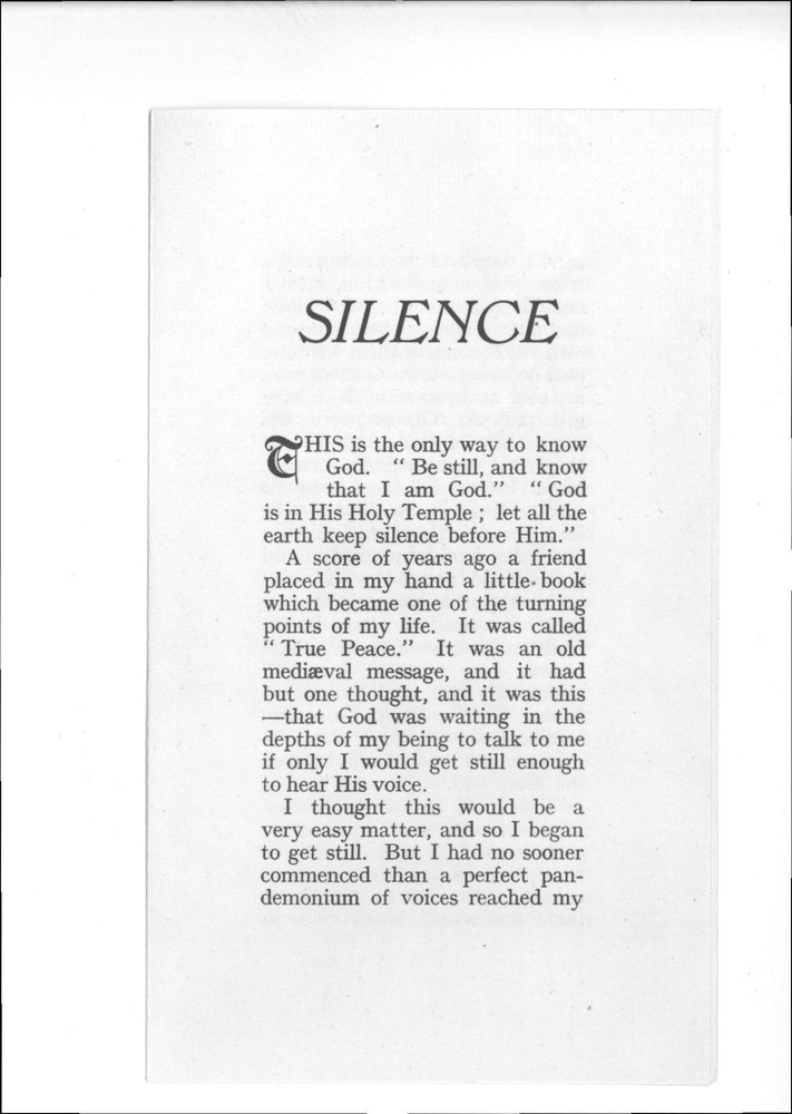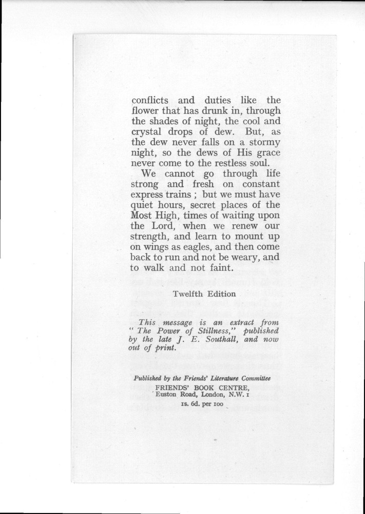 Condolence letter expressing sympathy for Lucy's loss. An extract from “The Power of Stillness,” by J.E. Southall is enclosed. Note on verso of envelope from housekeeper.
