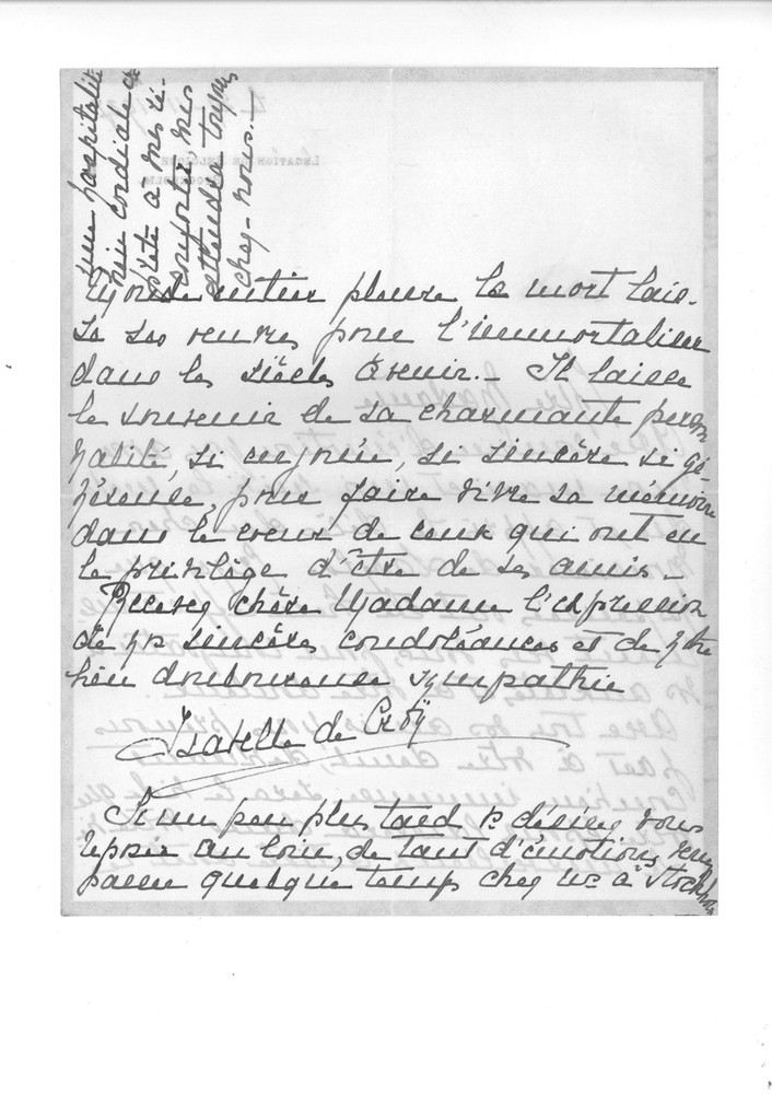 Condolence letter on the death of de László, expressing sympathy and inviting Lucy to visit Stockholm.
