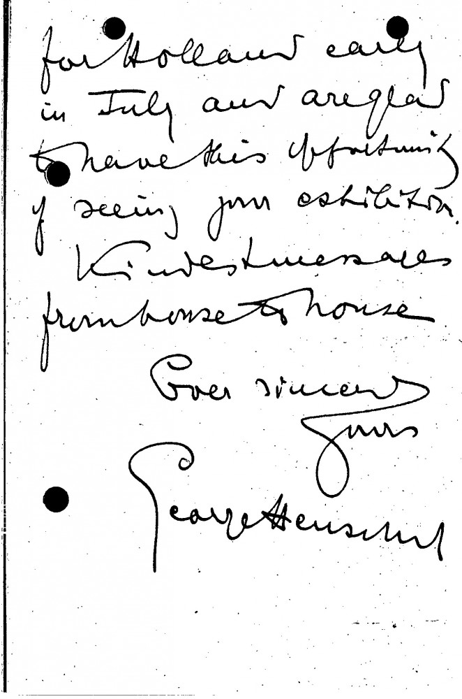 Letter from Sir George Henschel to de László, Exhibitions at French Gallery London 1924-1927, 107-0284 Letter from Sir George Henschel to de László, Exhibitions at French Gallery London 1924-1927, 107-0284