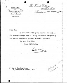 Concerning commission on Lady Markham’s portrait [4730] (see related items DLA107-0186 to DLA107-0188).