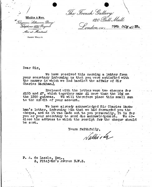 Letter from The French Gallery / Wallis & Son to de László, Exhibitions at French Gallery London 1924-1927, 107-0189