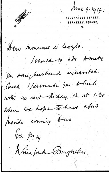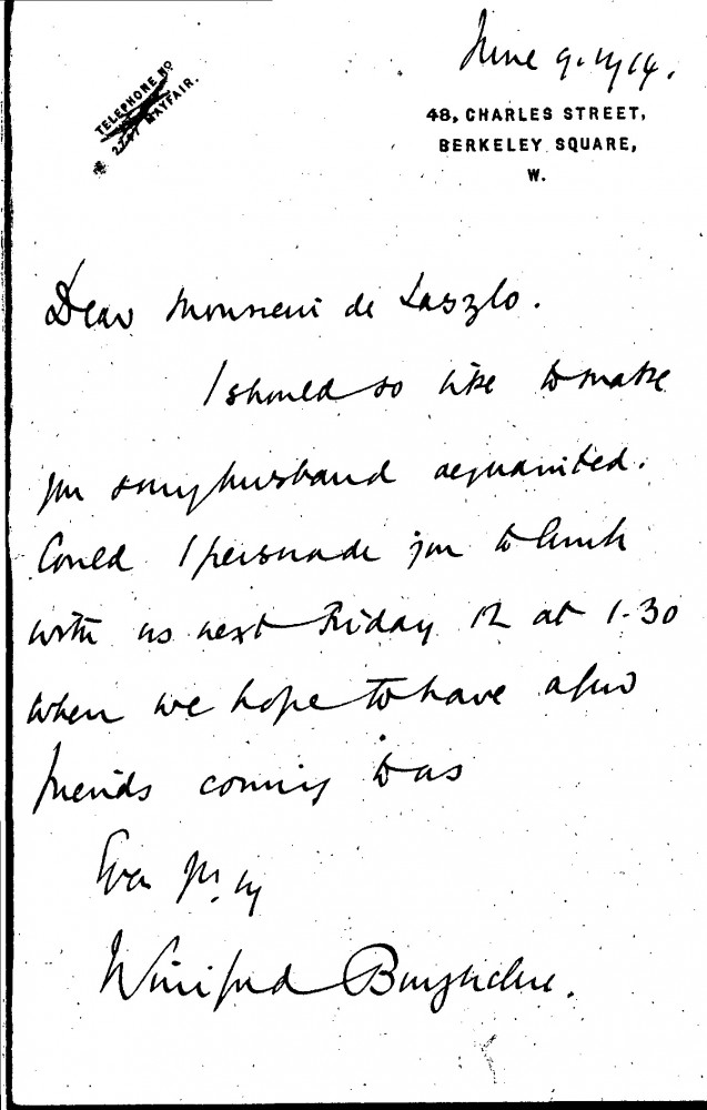 Winifred Gardner, Baroness Burghclere of Walden invites de László to lunch to meet her husband.