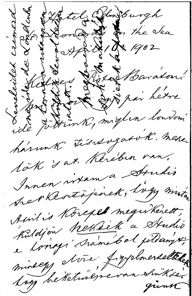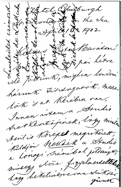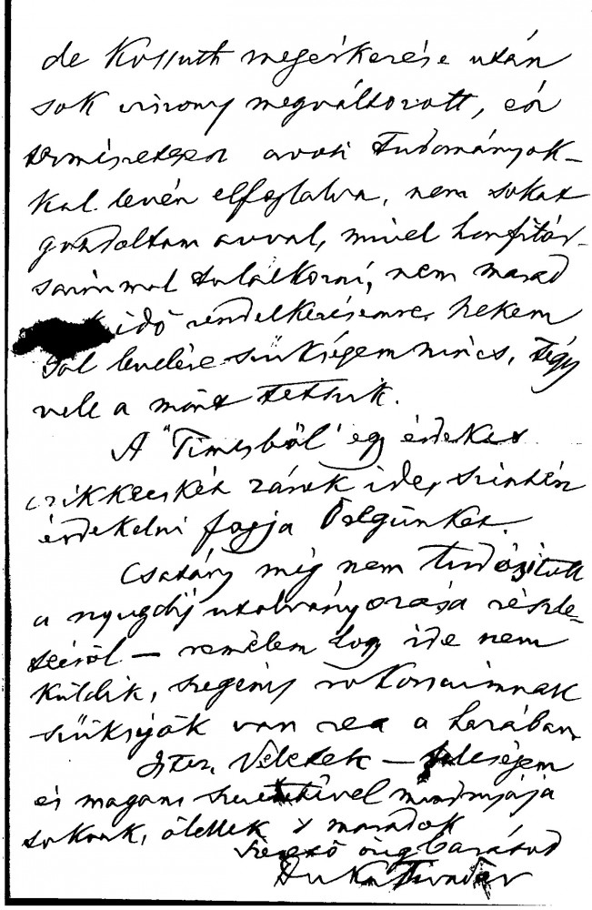 Letter is not addressed to de László, but is of some historical interest. The sender, Tivadar Duka (1825-1908), participated in the 1848-9 War of Independence and was General Görgei’s adjutant at the time of the surrender to the Russian army at Világos in October 1849. In this letter, he discusses the delayed publication in The Studio of de László's portrait of General Görgei [5369], which he calls 'a masterpiece'. He also mentions an old letter he received from Sándor Gál (1817-71)