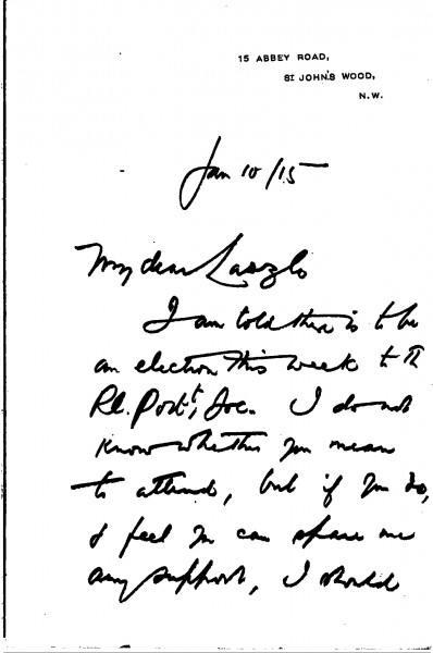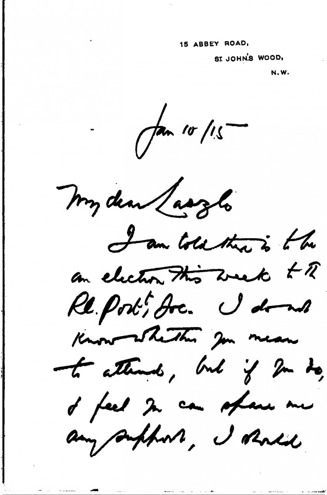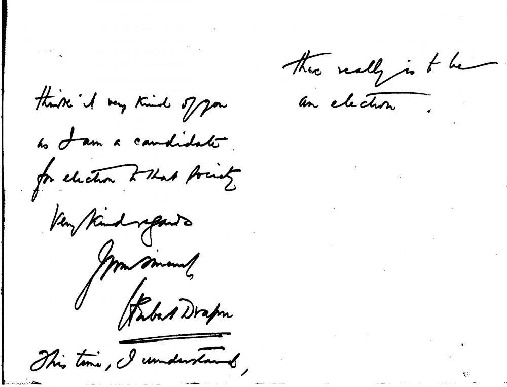 Letter from the painter, Herbert James Draper, requesting de László's support for election to the Royal Society of Portrait Painters. Based on the RP's membership lists, it does not appear that Draper was successful in his bid for election
