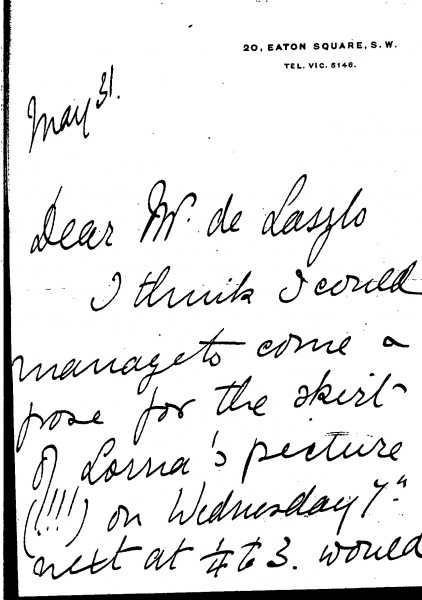 Arranging a time to pose for the clothing in de László's painting of Mrs George Edward Redvers Priors [9819]