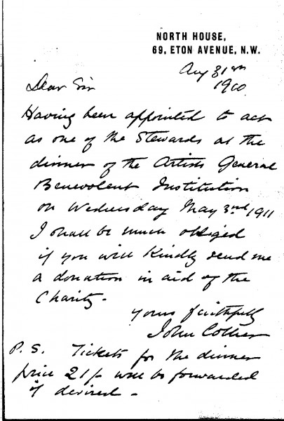 Requesting a donation to the Artists' General Benevolent Institution
