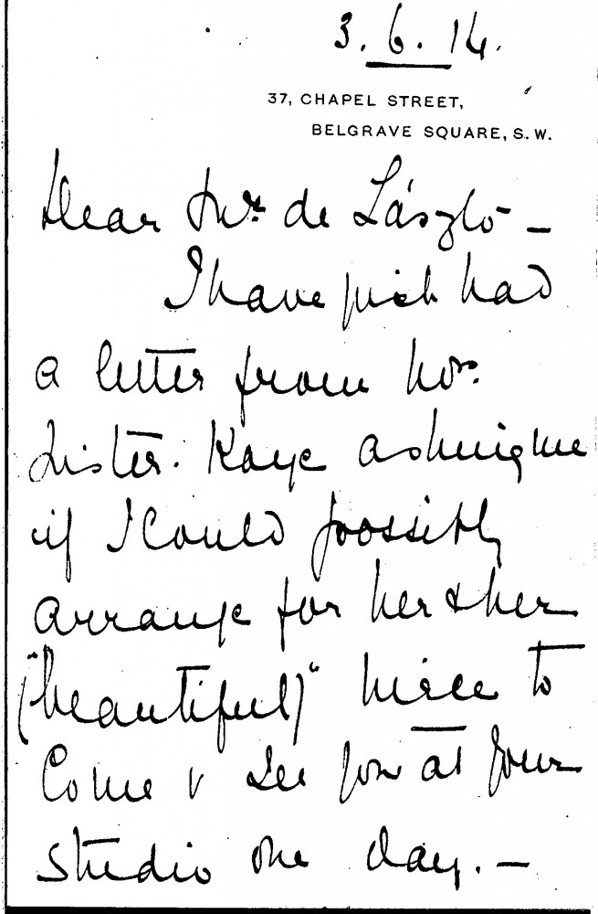 Letter to arrange a studio appointment/introduction to Mrs Lister-Kaye and her niece