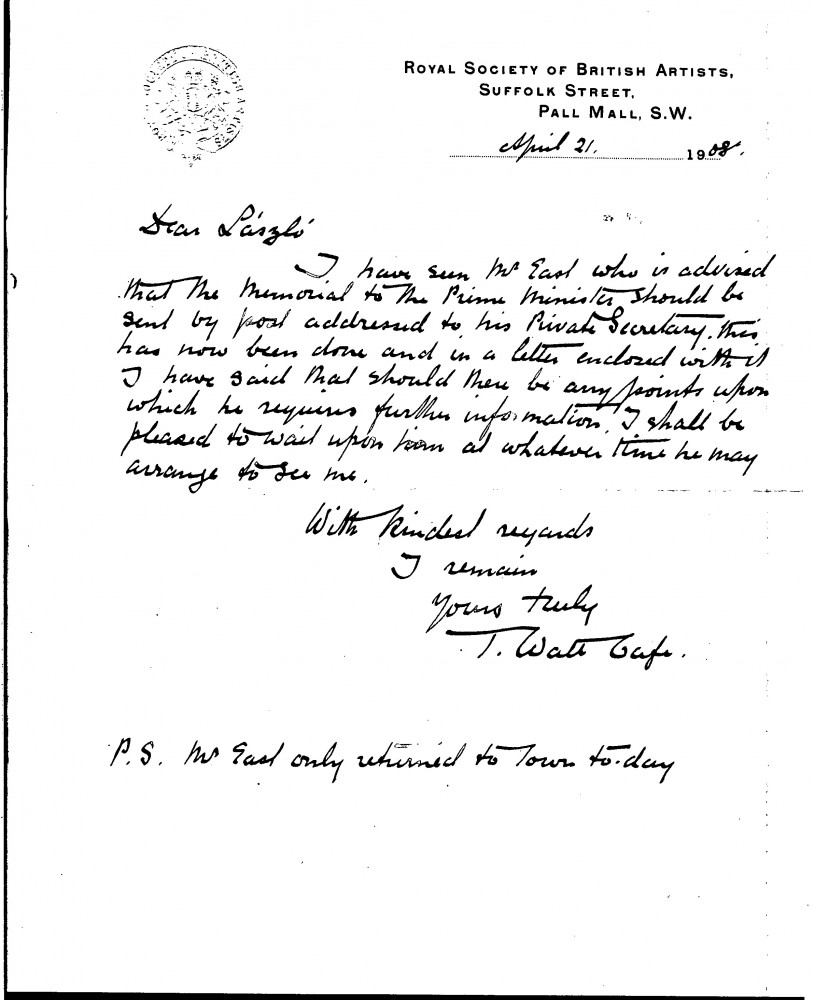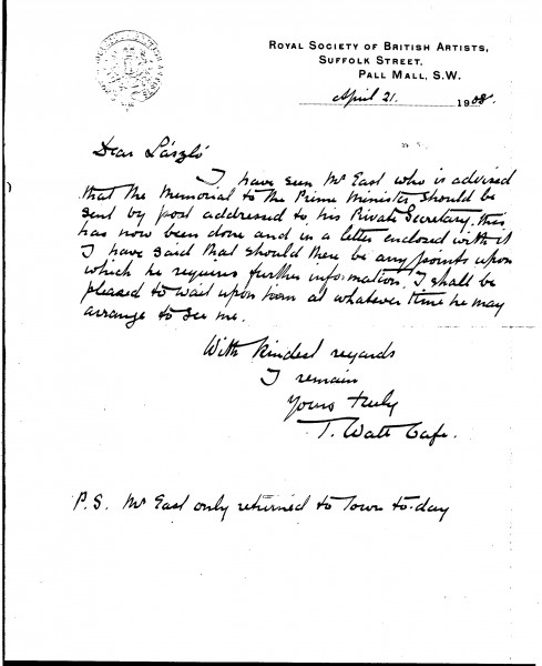 Letter regarding the memorial to the Prime Minister, Sir Henry Campbell-Bannerman