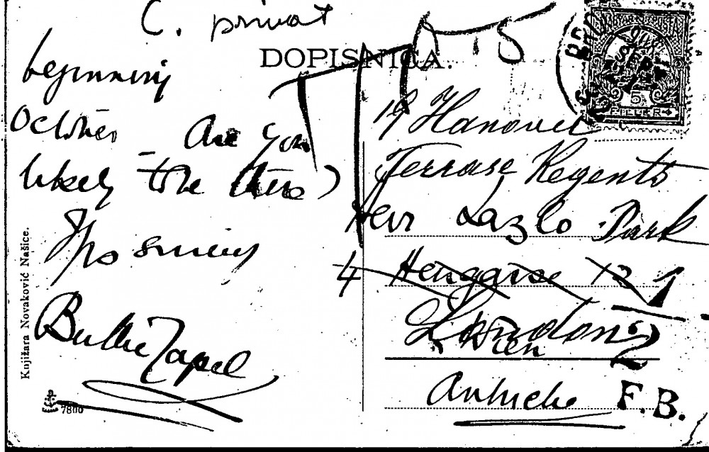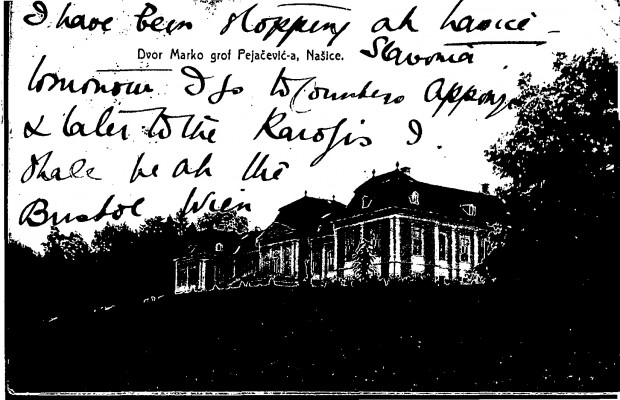 Postcard outlining the sender's travel plans