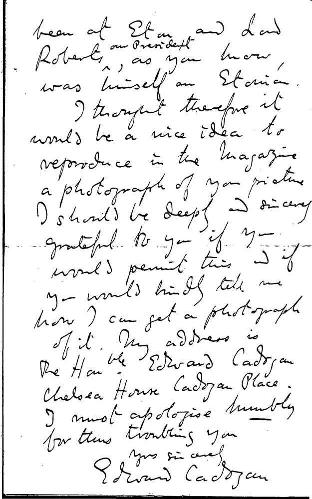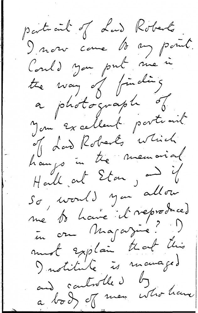 Letter requesting a photograph of de László's portrait of Lord Roberts [6924] for reproduction in a magazine. Page(s) missing