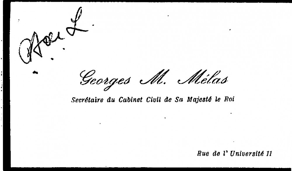 Previous See list Next 003-0053 003-0053 Visit card of George M. Mélas Accession number 003-0053 Type Visit card Sender Mélas, Major George M. Recipient László, Philip Alexius de (1869 - 1937) Location Public Collection, National Portrait Gallery, London Close 003-0053 Letters 1900-1915 Private, 003-0053