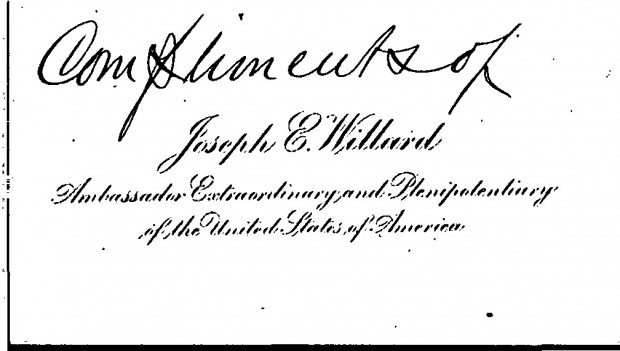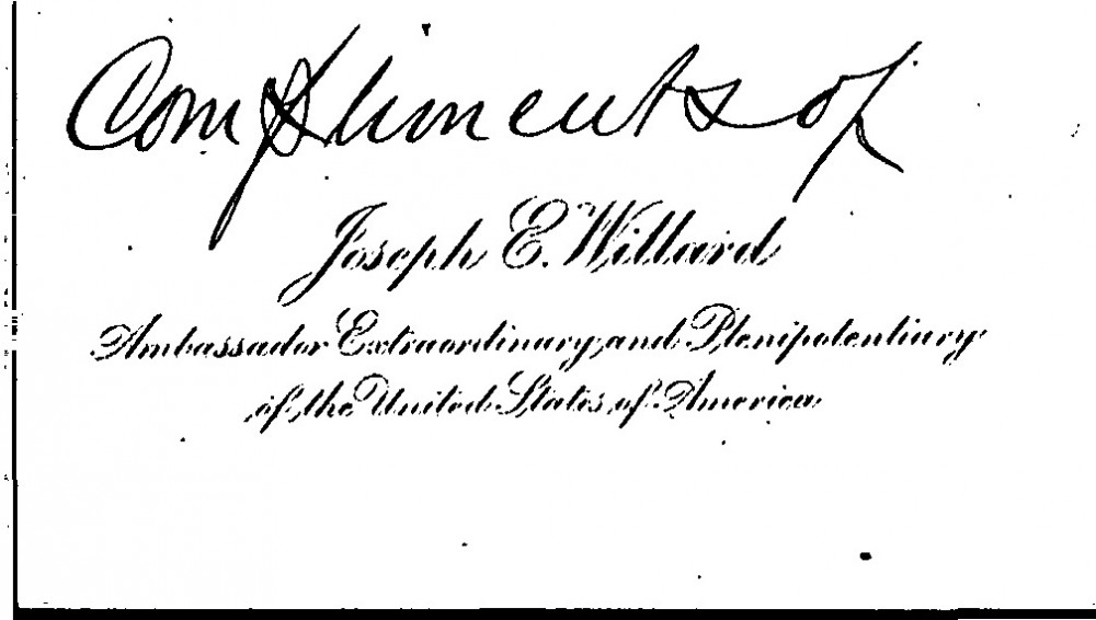 Visit card of the American politician, philanthropist and United States Ambassador to Spain, Joseph E. Willard