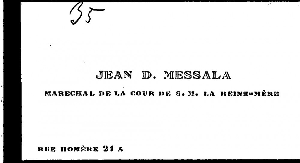 Previous See list Next 003-0064 003-0064 Visit card of Jean D. Messala Accession number 003-0064 Type Visit card Sender Messala, Jean D. Recipient László, Philip Alexius de (1869 - 1937) Location Public Collection, National Portrait Gallery, London Close 003-0064 Letters 1900-1915 Private, 003-0064