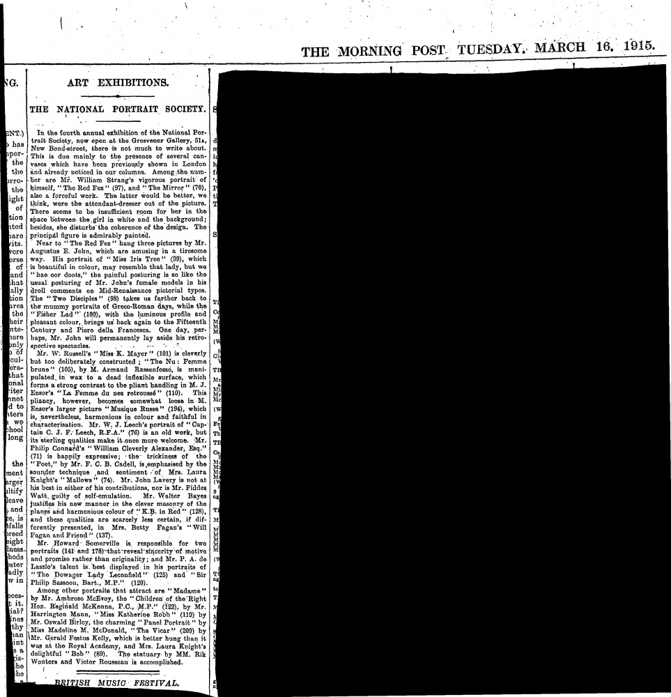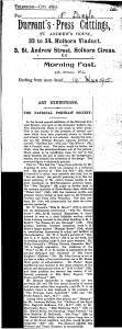The Morning Post. Review mentioning de László's portraits of the Dowager Lady Leconfield [6019] and Sir Philip Sassoon [6526] at the National Portrait Society's exhibition at the Grosvenor Gallery. Duplicate of DLA089-0117.