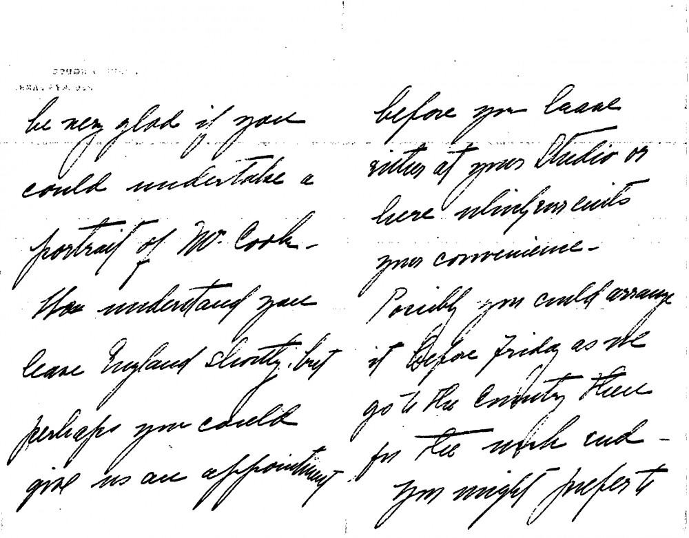 Beatrice Cook wishes to commission a portrait of her husband, Frank Henry Cook [110786].