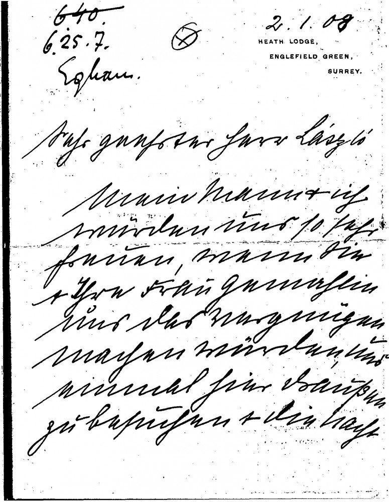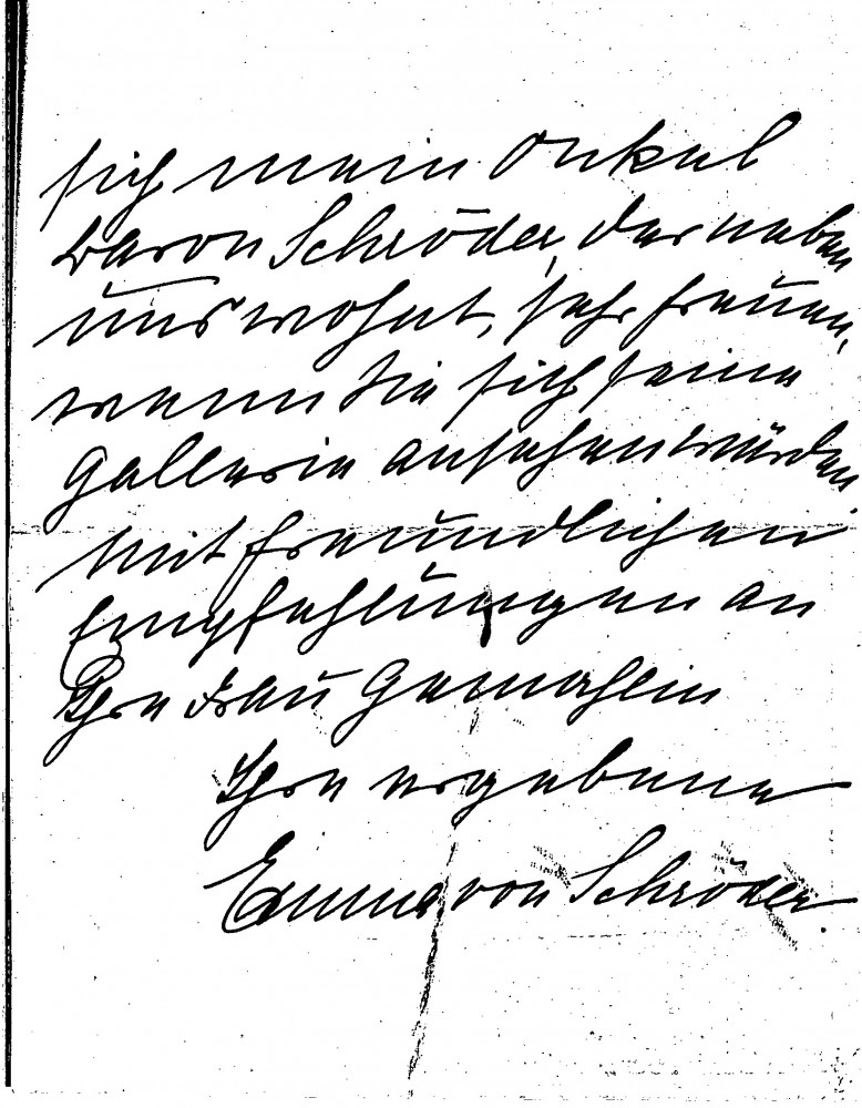 Emma von Schröder invites the de Lászlós to visit her and her husband, Baron Bruno Schröder, at their country home. Her uncle, Baron Johann Heinrich 'Henry' von Schröder, who lives next door would be pleased if they could visit his gallery.