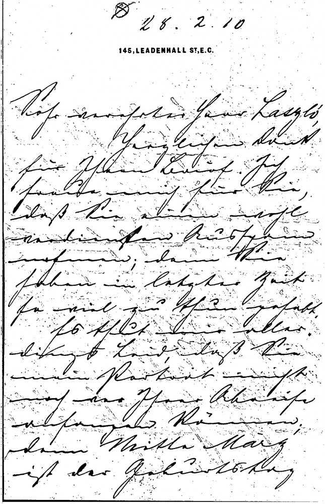 Bruno von Schröder is disappointed de László cannot start his portrait prior to his (the artist's) departure as he had hoped to surprise his wife on her birthday with the picture.