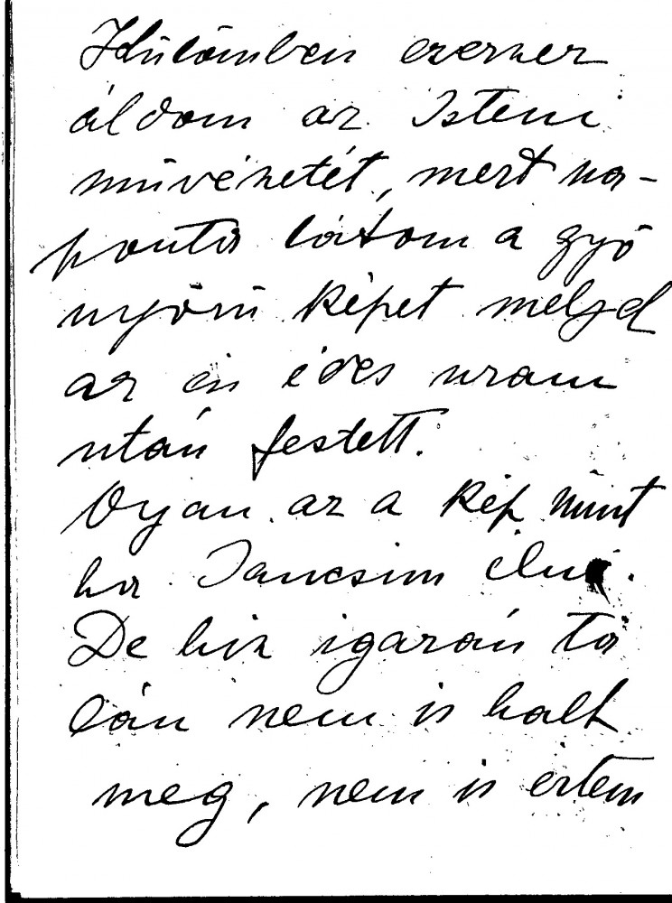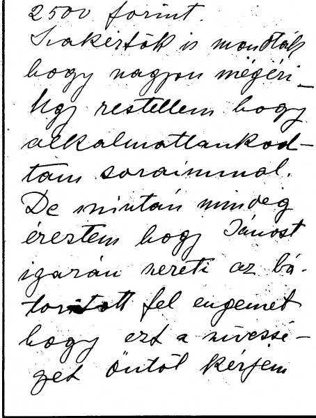 Partial letter (the beginning is missing) from the widow of the sculptor, János Fadrusz, in which she requests a favour of de László since she "always felt that ... [de László] really loved János". She praises de László's portrait of her husband [5030], and notes that she has had to put his studio up for auction