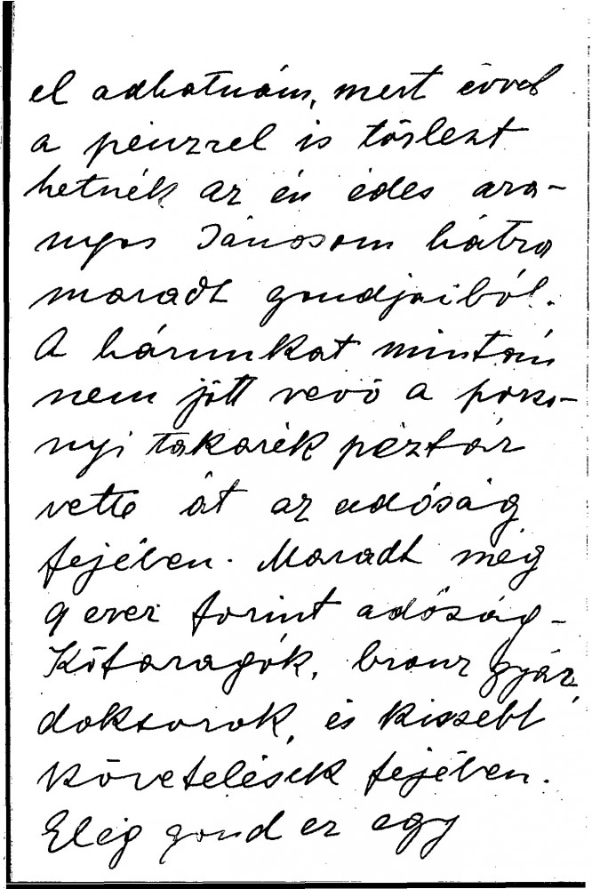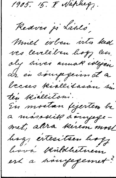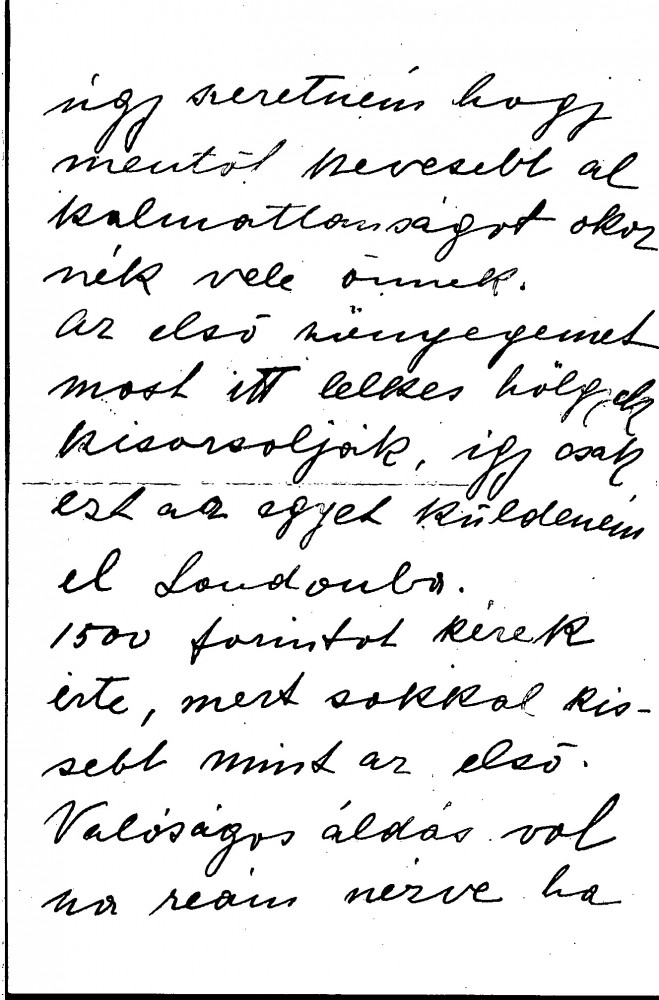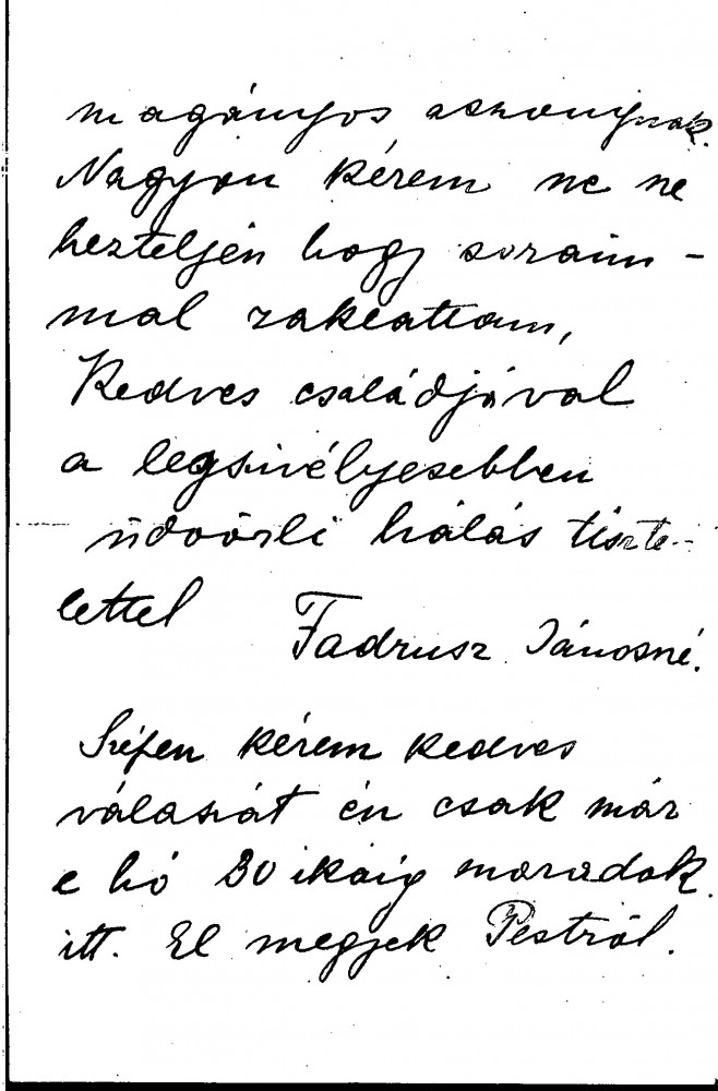 Letter from the widow of the sculptor, János Fadrusz, reminding de László that he had said he would exhibit her handmade carpets at his exhibition (she was a sculptress and painter who also designed and wove carpets). She has now completed her second carpet and asks where she can send it. She is asking 1500 Forint for it, which would help her to pay off part of her husband’s debts