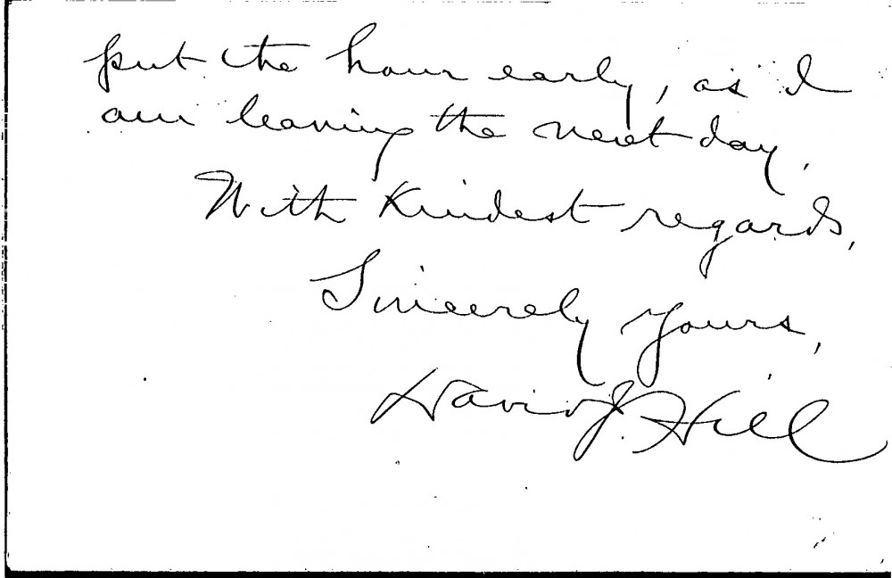 Undated letter from the Reverend David Jayne Hill to de László regarding his attendance at a dinner, to which "Mr Zorn", possibly the artist Anders Zorn, had also been invited