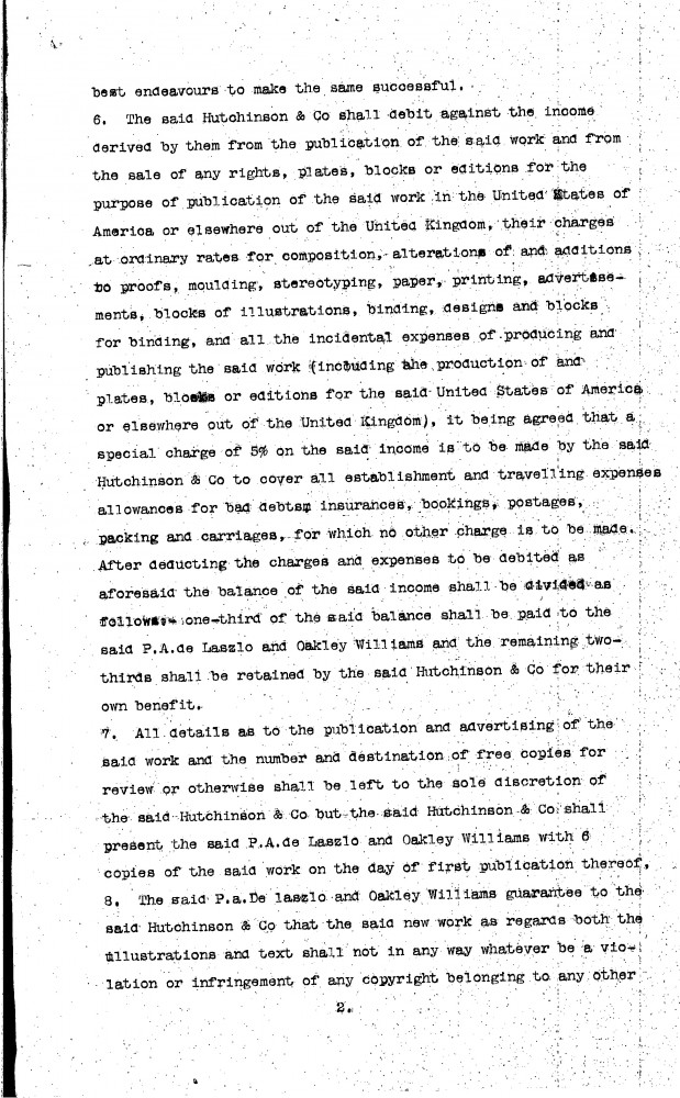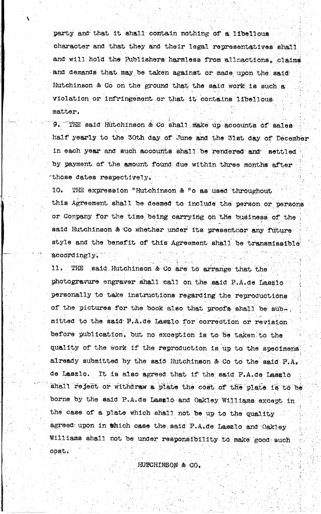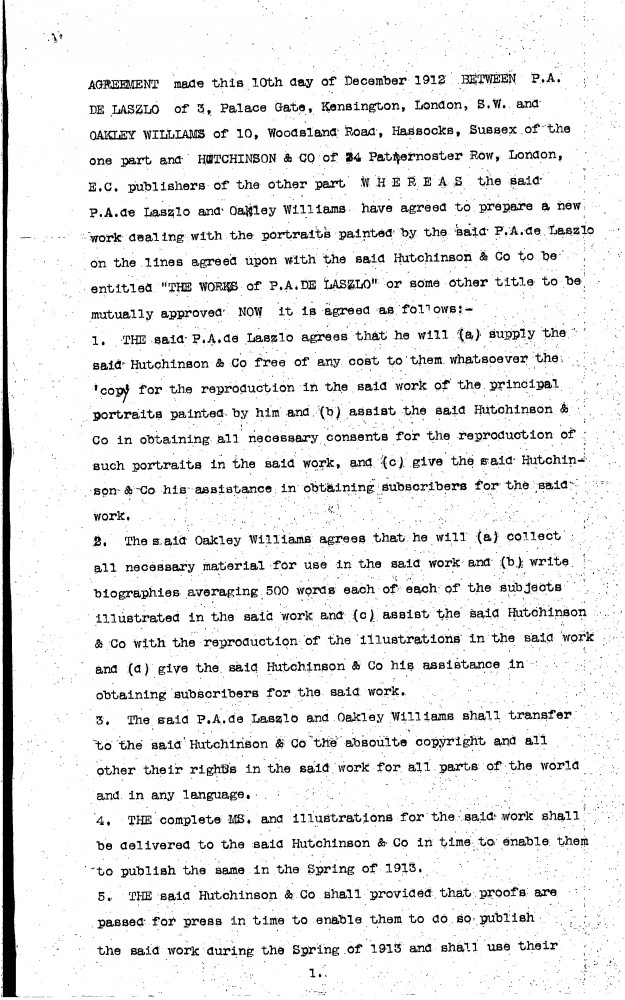 Contract dated 10th December 1912 between the publishers, Hutchinson & Co, de László and Oakley Williams