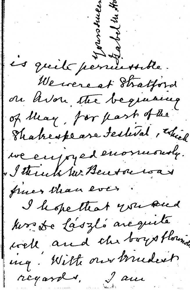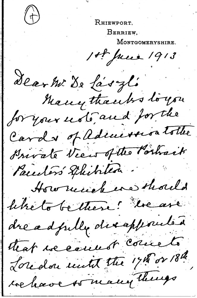 Letter from Isabel Mary Howell to de László regretting that she and her sisters cannot attend the private view of the exhibition at the Grafton Galleries in which their group portrait [112057] was to be shown