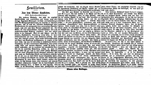 Review of Künstlerhaus (Vienna), Spring exhibition 1904. De László described as a "real portrait talent" who can capture a "slight impression in a nonchalant way". Whereas his portrait of Alice Barbi is "a little bit too cloying and soulful" [2340], that of the Princess Metternich [110466] is a "masterpiece".