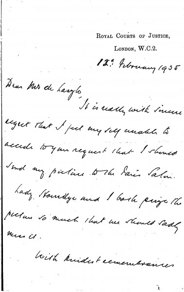 Letter from Sir Thomas Gardner Horridge to de László, Letters Personal 1934 A to M 1935, 022-0341
