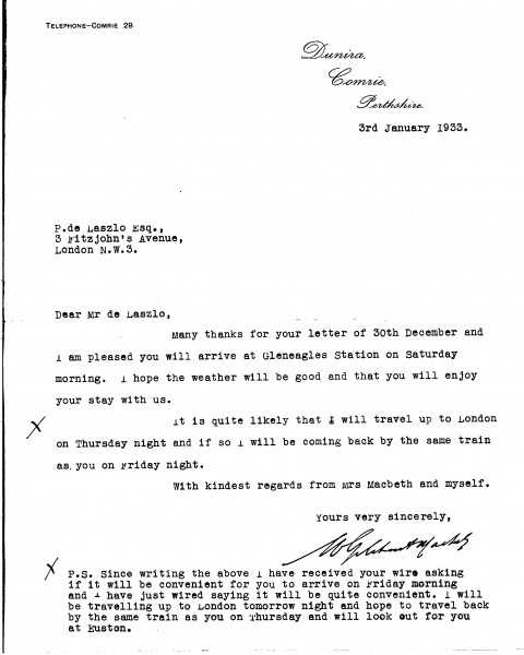 De László's travel arrangements to Dunira to undertake a commission [3918][3919][7014].