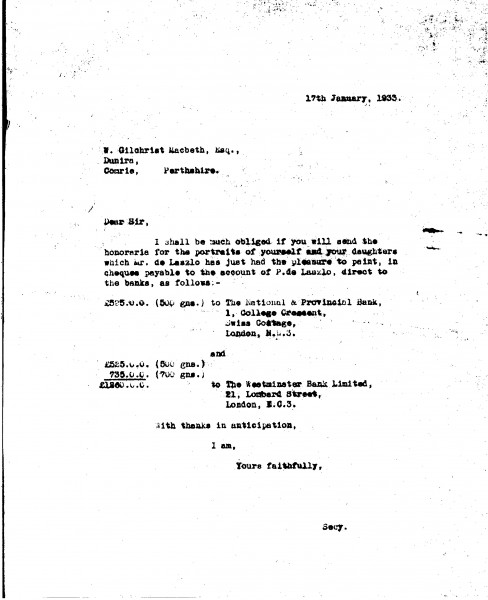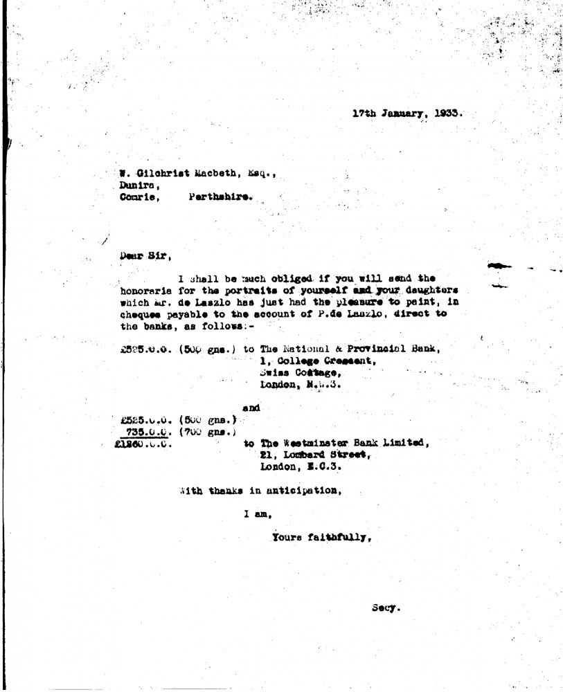 Honoraria due for portraits commissioned by Macbeth [7014][3918][3919].