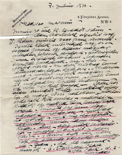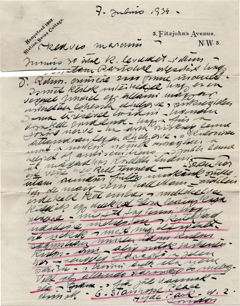 De László advises Marczi to transfer his son to a Hungarian state institution. Modern Hungarian exhibition at Knoedler's is a failure. The "Frim boys[']" decision to sell their grandparents’ pictures "which have the old name on them ... is awkward." (Envelope may not be original, as dates on postage stamps differ from letter.)
