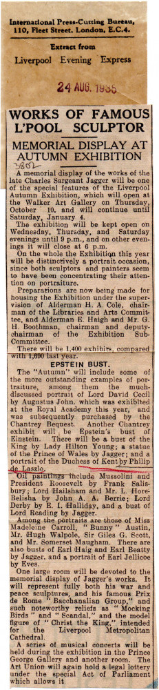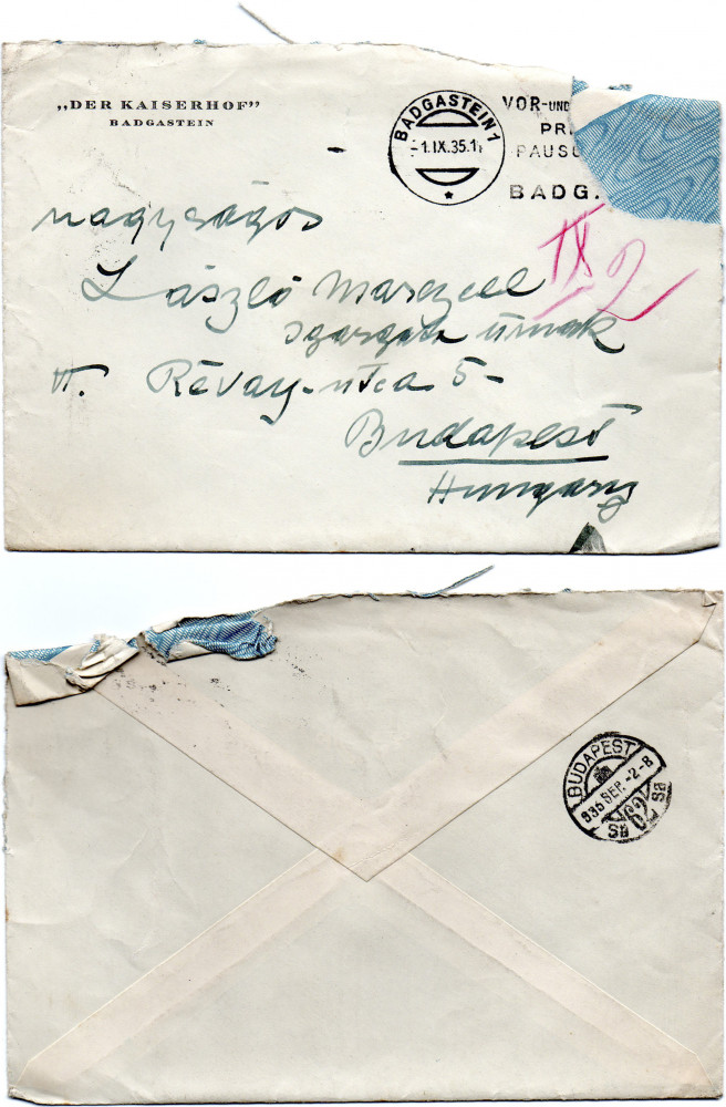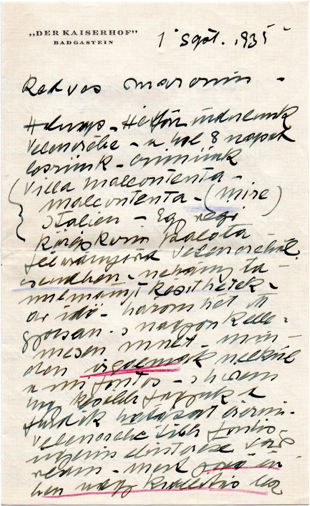 Leaving for the Villa Malcontenta tomorrow, plans to sketch there. Enjoying scenery of Bad Gastein. Horthy portrait [110886] to be exhibited alongside other portraits of the artists at the Nemzeti Szalon in October. Tragic death of Queen Astrid of Belgium. Item includes press cutting from the Liverpool Evening Express (24 August 1935) mentioning the inclusion of de László's portrait of the Duchess of Kent at the Liverpool Autumn Exhibition.