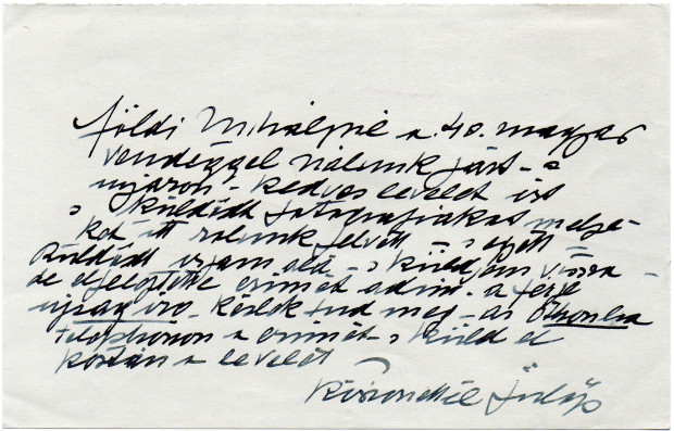 De László asks Marczi to obtain the address of Mrs Mihály Földi and to then post a letter to her with a signed photograph (of the artist) on his behalf. (DLA135-0058 & DLA135-0059 letters are in the same envelope.)