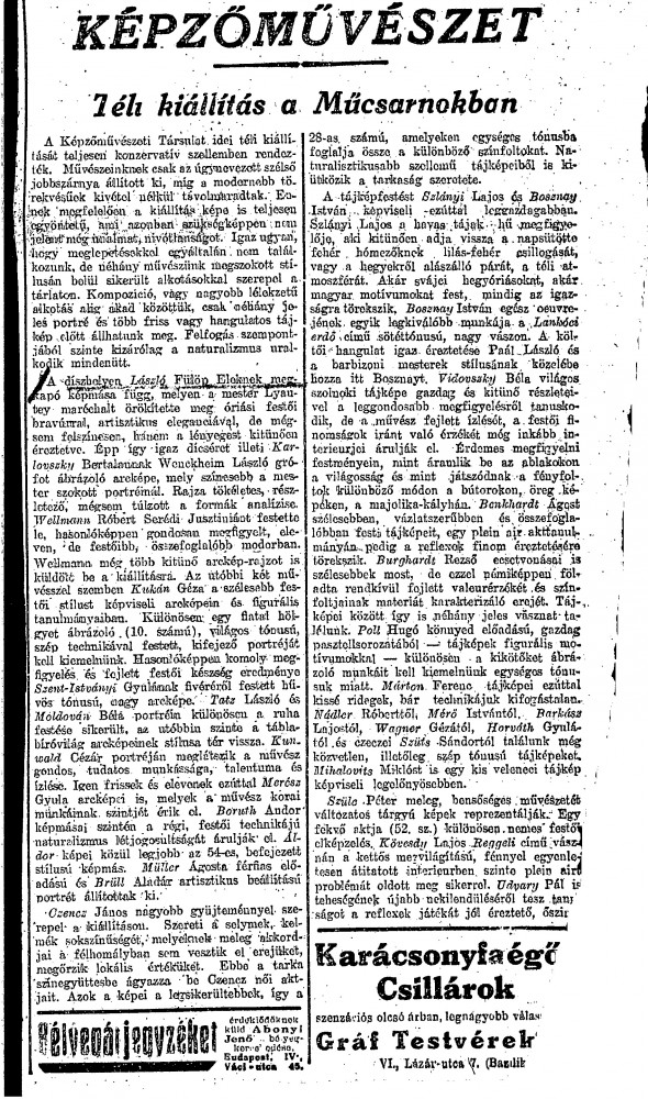 Pesti Hirlap. Report on the Winter Exhibition, where de László exhibited a portrait of Marshal Lyautey [6118]