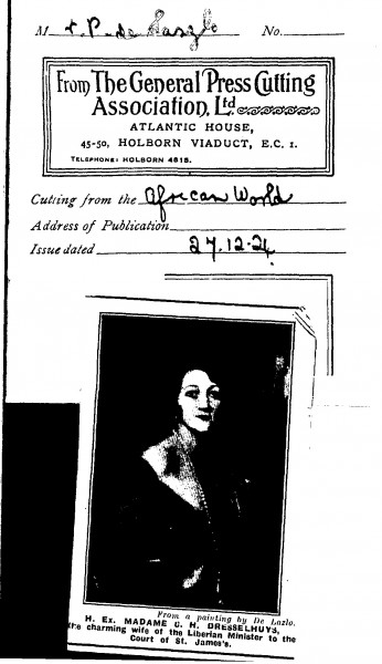 African World. Reproduction of de László's portrait of Mme Cornelius Dresselhuys [4912], "charming wife of the Liberian Minister to the Court of St. James’s"