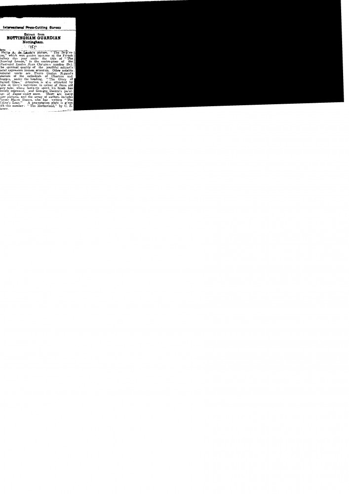 Nottingham Guardian. De László's “The Inspiration” [11772], which was admired at the French Gallery this year under the title of “The Drawing Lesson", is the centrepiece of the Illustrated London News' Christmas Number