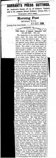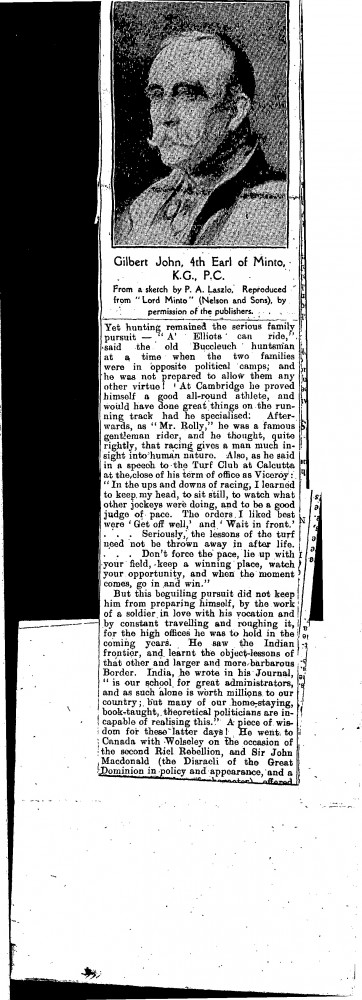 Morning Post. Article concerning Lord Minto's memoir, with an illustration from a sketch by de László of Lord Minto [6340]
